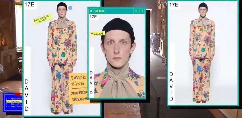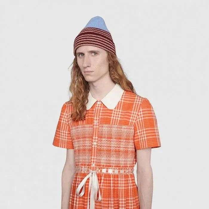 2020 年 7 月,GUCCI 发布「终曲」时装系列,将刻板印象中男女衣着的元素「混用」,女性披着男士的夹克和西装,男性打上丝巾与领结,穿上印花或者丝绸刺绣面料的衣物。