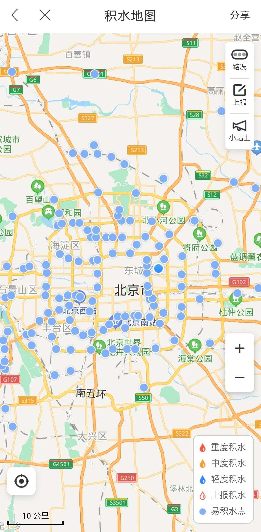 百度地图的积水地图页面