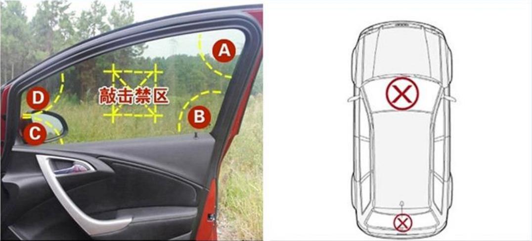安全锤破窗砸击位置示意