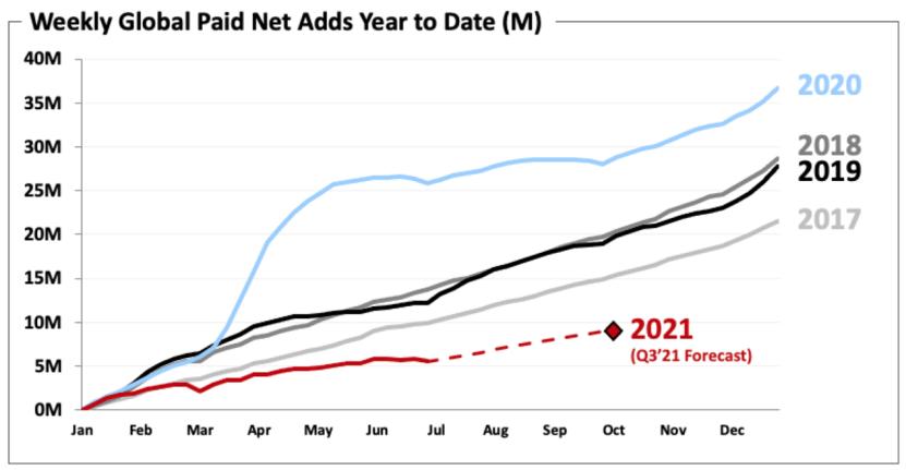 Netflix预计,2021年第三季度将净增加350万付费用户,高于去年同期的220万;目标是2021年全年营业利润率达到20%,而2020年为18%。