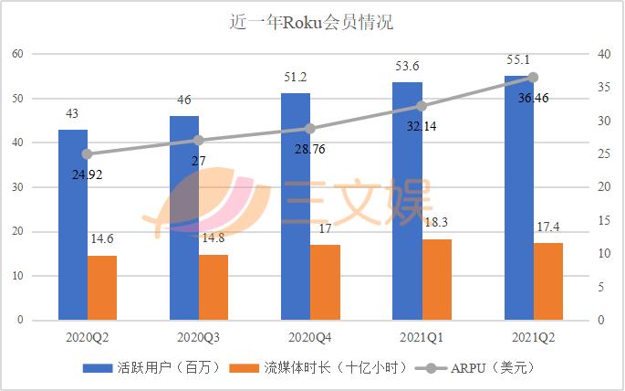 公开数据显示,在Roku平台上最多可以观看包括Netflix、Hulu和许多地方电视台在内的五千多个频道的内容。同时,Roku也推出了自己的频道,与超过175个合作伙伴建立授权和分销关系。在本季度,Roku首次推出了原创节目,其中30个节目免费提供给Roku频道的观众,三分之一的Roku频道用户播放了这些原创节目。得益于此,用户在Roku频道上的流媒体时长同比增长一倍多。