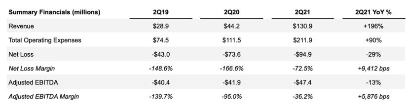 第二季度,公司营业收入9600万美元,同比增长43%;净亏损达2040万美元,相比去年1480万美元,亏损进一步扩大;调整后的息税前利润为-380万美元,去年同期为-530万美元。