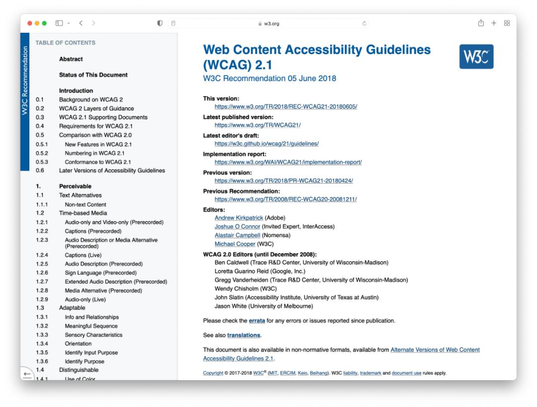 Web 内容无障碍指南(WCAG)2.1 涵盖了能使 Web 内容更易于访问的各种建议。遵循这些准则能使更多残疾人更易于获取网站内容,其中包括失明和弱视、耳聋和听力丧失、运动受限、言语障碍、光敏性和多种残疾组合的残疾人,以及有学习障碍和认知局限的残疾人