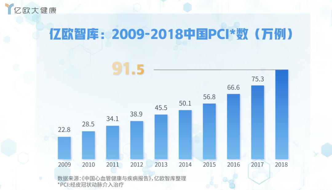 冠脉介入自20世纪80年代引入国内,得到了快速发展。到2018年,中国每年PCI(经皮冠状动脉介入治疗)量已经达到91.5万。