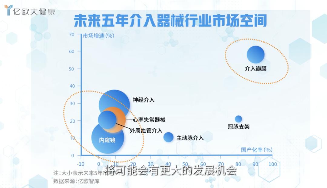 另据亿欧智库数据显示,未来五年,内窥镜企业、二尖瓣、三尖瓣及介入瓣中瓣企业、神经介入、外周血管介入等有代际升级的企业,将可能会有更大的发展机会。