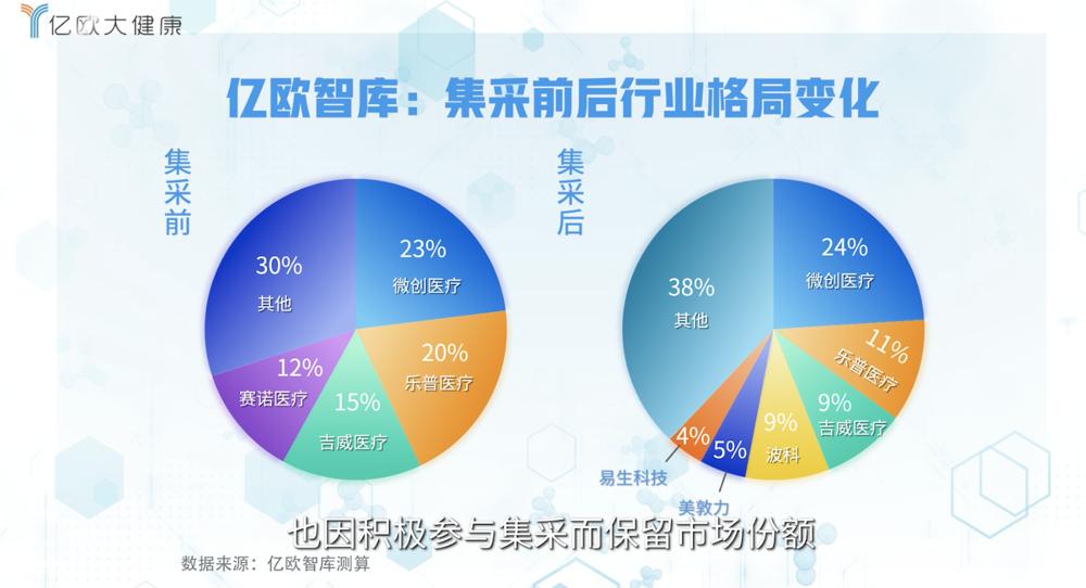 集采前,国内冠脉支架市场由微创、乐普、吉威、赛诺等企业占据较大份额;而在集采后,微创、乐普、吉威依旧占有不错的市场份额,波科、美敦力等国际品牌也因积极参与集采而保留市场份额。