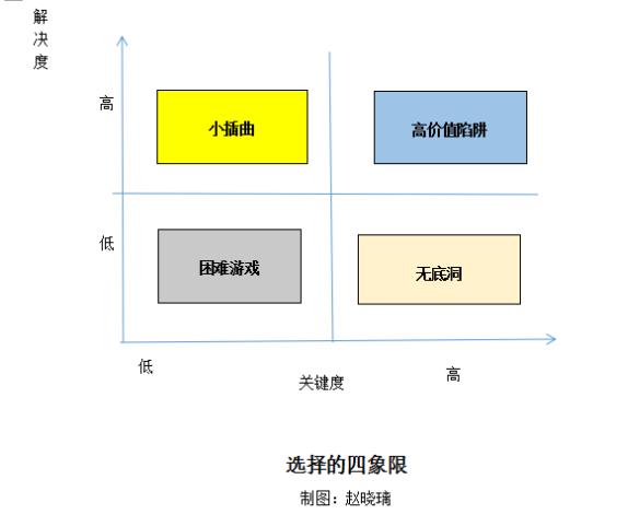 其中,解决度低关键度低【以你目前的能力无法解决且不重要】的选择,被称为“困难游戏”。