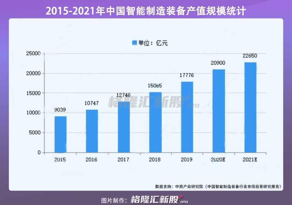 近年来,随着我国国民经济的持续向好发展,制造业自动化、智能化水平的不断提高,装备制造需求不断增加,其市场生产规模逐渐扩大,据中商产业研究院预测,2021年我国智能制造装备产值规模将达22650亿元。