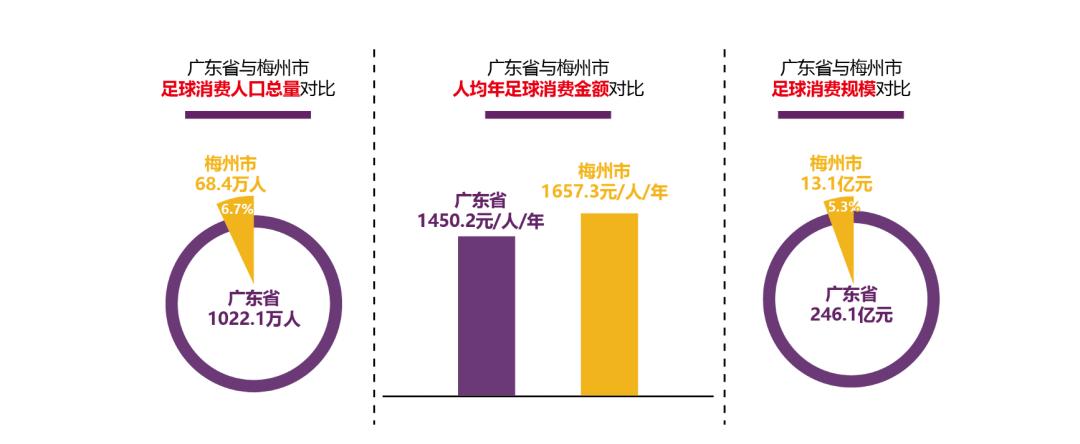 此外《产业报告》测算得出,2019年梅州市足球人口总量为104万人,足球人口比例(即足球人口在14岁以上常住人口中占比)为28.3%,居全省21个地级市首位。梅州市足球消费总规模为13.1亿元,人均年足球消费金额(除足球彩票外)为1657.3元,略高于广东省人均年足球消费金额(1450.2元)。