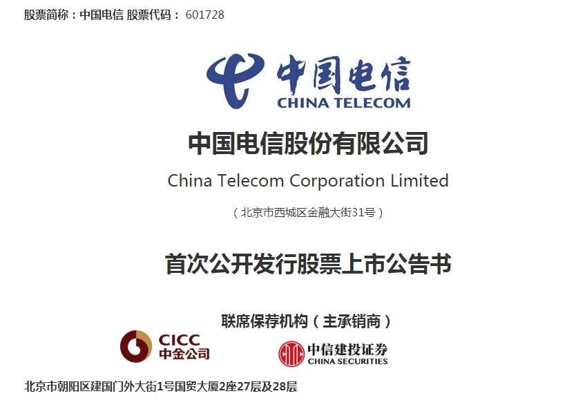 18日晚间,中国电信股份有限公司(简称“中国电信”)发布《首次公开发行股票上市公告书》称,公司股票将于2021年8月20日在上海证券交易所上市。发行价格为4.53元/股。