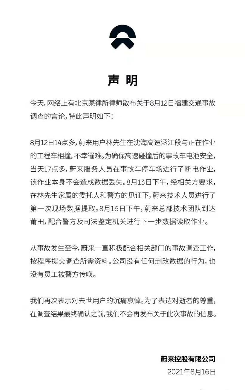 到现在,这起事故的疑云密布,真相是什么,我们静等调查结果的公布。但从蔚来的声明来看,倒是滴水不漏,似乎这件事压根儿跟他们没什么关系。