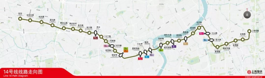 14号线起自封浜站,终点为桂桥路站,途经嘉定、普陀、静安、黄浦和浦东新区等5个行政区。