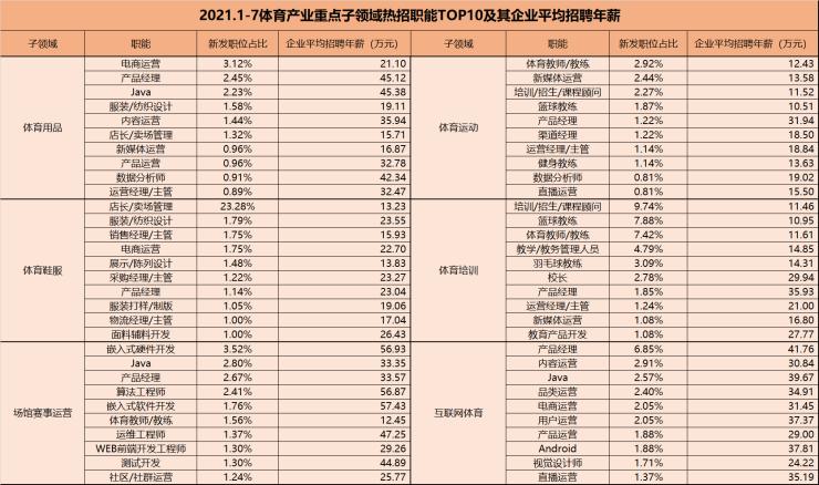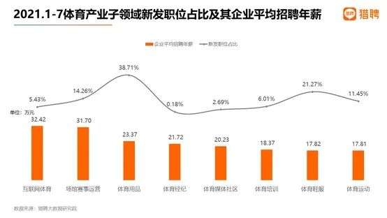 相关企业增多,就业岗位自然也随之增加。招聘平台猎聘发布数据,称2021年1-7月体育产业的新发职位比2020年同期增长了24.20%。