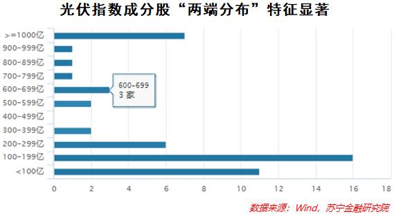 虽然龙头效应显著,但在光伏指数成分股的构成中,200亿以下的中小市值公司数量仍然占据绝大多数。究其原因,光伏产业是一个典型的重资产行业,无论是上游的硅料、硅片,还是电池片、组件,都是典型资本密集型兼技术密集型的细分产业,因此行业的规模效应(横向扩展)和一体化效应(纵向产业链扩展)都比较明显。
