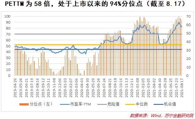 从PETTM的估值水平看,当前光伏行业绝对估值处在60倍左右,估值分位数也处在历史较高水平,但结合其盈利情况来看,行业PEG在1附近,整体较为合理,但需要警惕其中个别热点板块的回调风险。