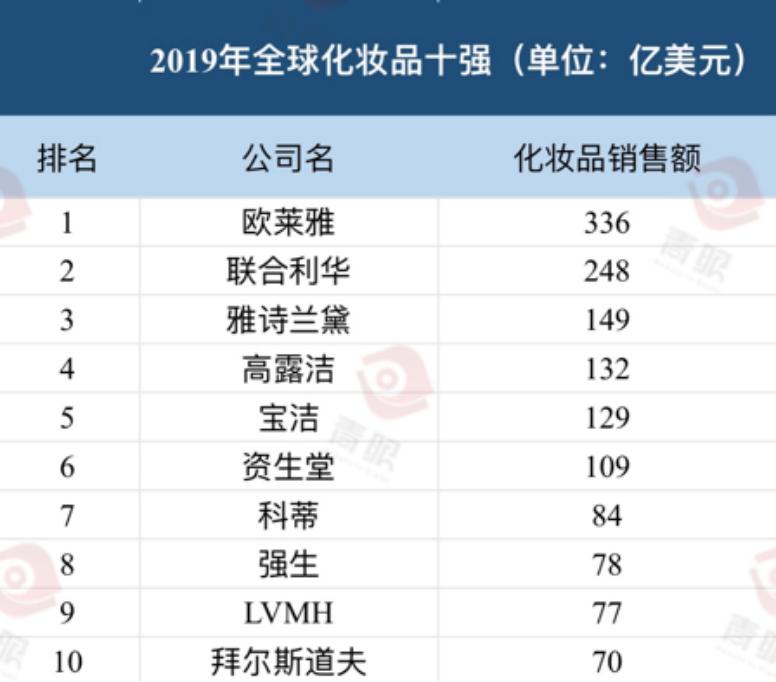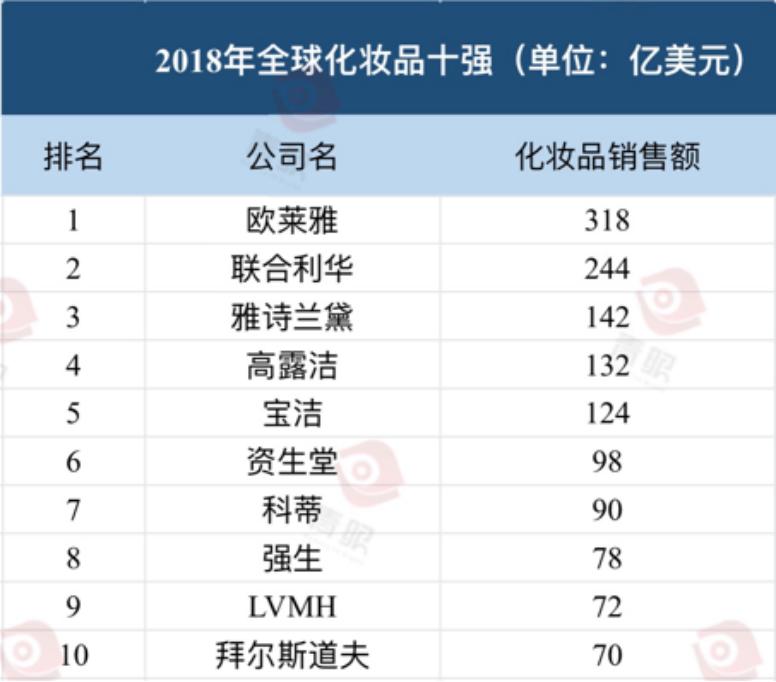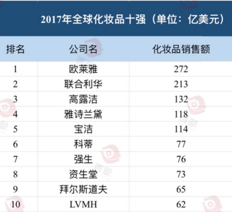 最新:全球化妆品十强出炉