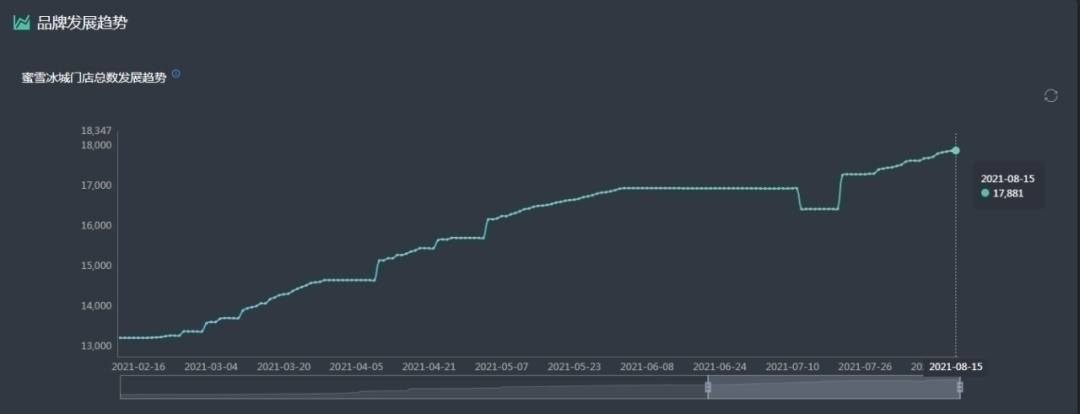 主攻下沉市场,客单价不到10元,略带一丝土气,蜜雪冰城从1997年成立至今,非但没有隐没在行业浪潮中,反而规模像滚雪球一般,越做越大。据极海品牌监测数据显示,截止8月15日,蜜雪冰城全国门店接近18000家。这一惊人的数据让不少茶饮品牌望尘莫及。
