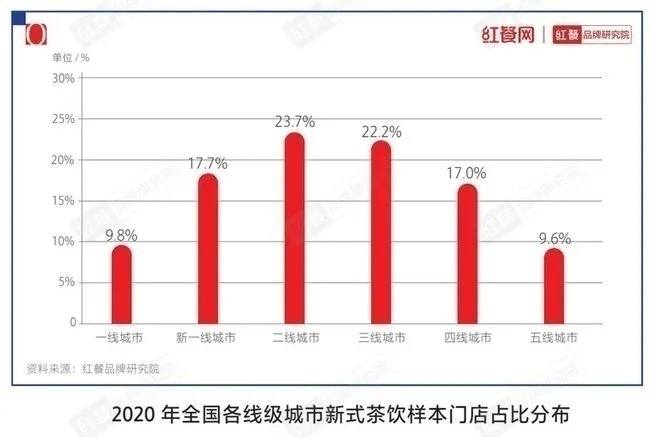 据《2020新式茶饮白皮书》数据显示,各新式茶饮品牌在一二线城市的布局基本饱和,流量趋于见顶,并逐渐向三四线城市寻求新的增长点。