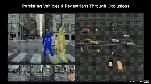 接下来,Karpathy 描述了纯视觉方案的历史,以及方案发展到今天的逻辑,他展示了一段特斯拉处理其图像数据的视频。