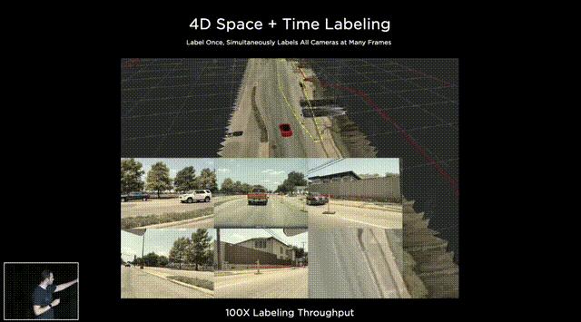 最后,Karpathy谈了AI公司常见的数据标注问题,他认为,把数据外包给第三方去做手工标注并不好,所以特斯拉选择自建团队来给数据打标,目前已经从2D图像标记升级到4D矢量空间的标记。