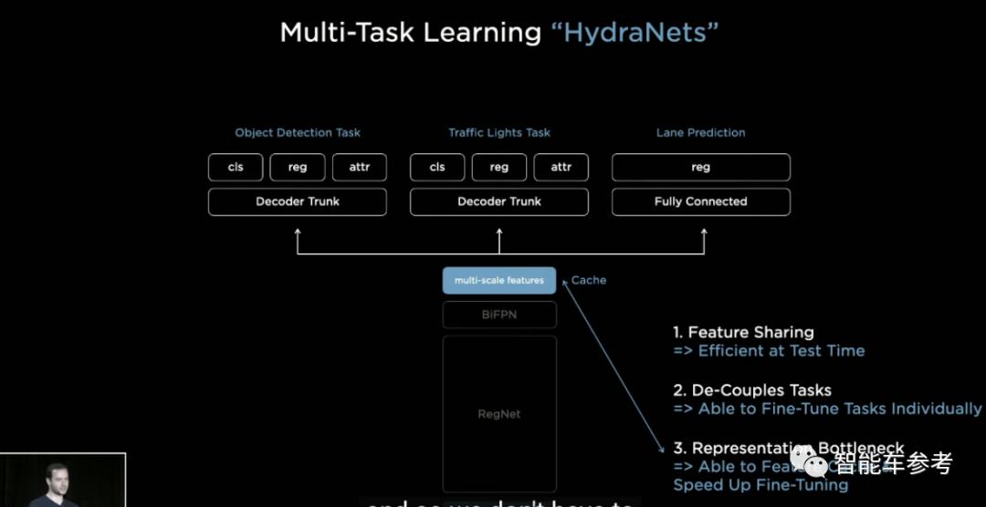 于是,特斯拉如重新设计了神经网络,就是上面的“九头蛇”。