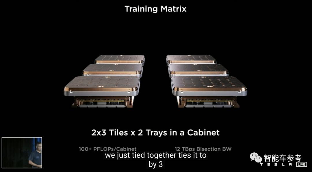 这也是特斯拉首个训练模块,而把多个模块集合,就能形成更大算力的训练阵列: