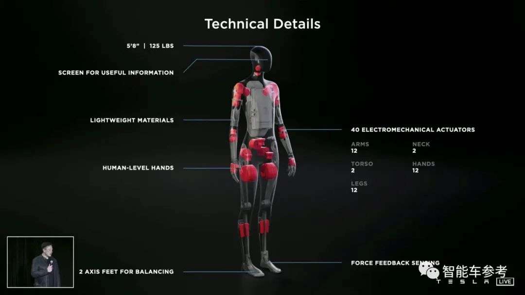 汽车机器人,搭载了特斯拉包含芯片在内的软硬件系统,但跟百度的不同,不像汽车更像人。