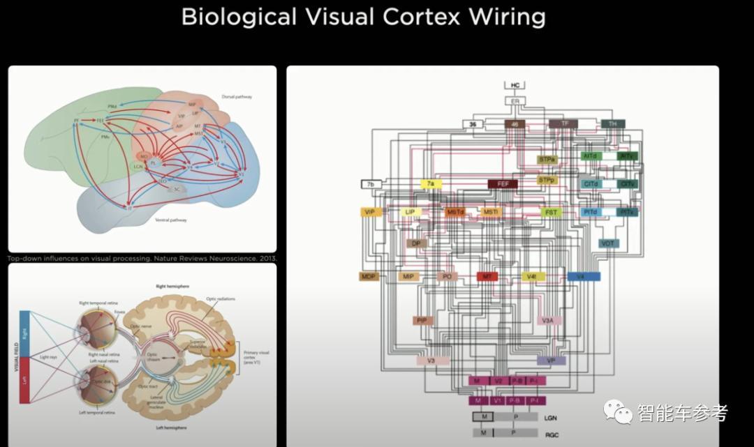 特斯拉纯视觉方案,基本构建原则是把自动驾驶系统看作一个生物,有眼睛、有神经、有大脑。