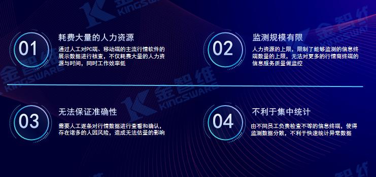 为避免行情数据展示出错,交易所通常会在重要的业务场景上线时采取人工检查的方式对主流的行情交易软件进行检查。这种方式虽然能够发现行情商终端存在的问题,但同时也存在一些弊端: