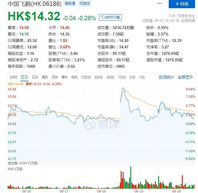 受财报影响,次日港股开盘,飞鹤盘中涨幅一度超过10%,最高触及15.62港元。但这一走势并未保持,截止目前报14.32港元。