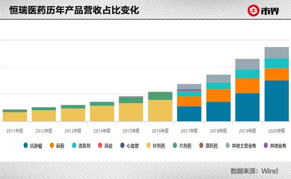 抗癌药可以说是恒瑞医药的营收支柱,2020年包括PD-1单抗在内的肿瘤药品为恒瑞医药贡献了152.68亿元的营收,占比达55%。