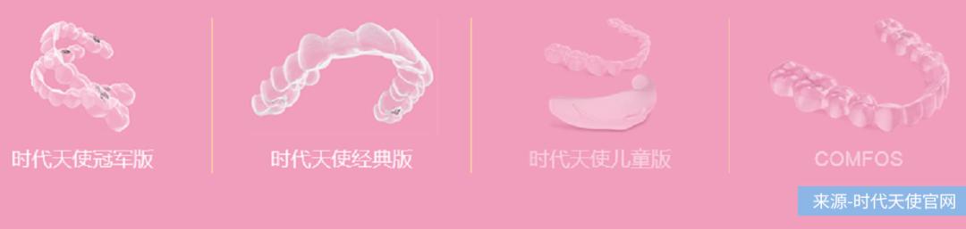 从时代天使官网数据可知,时代天使旗下目前共有四种隐形矫正器,分别为2016年上市的时代天使经典版,官方指导价3.2万元、2016年上市的时代天使冠军版,官方指导价4万元、2017年上市的COMFOS,官方指导价2.4万元和2019年上市的时代天使儿童版,官方指导价2.6万元。