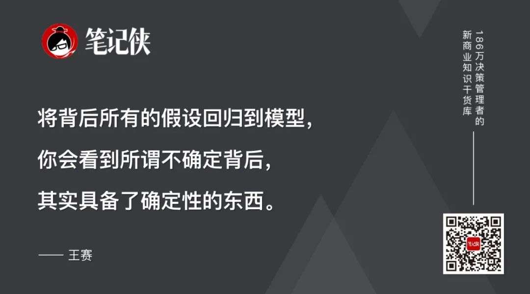 因此,将背后所有的假设回归到模型,你会看到所谓不确定背后,其实具备了确定性的东西。