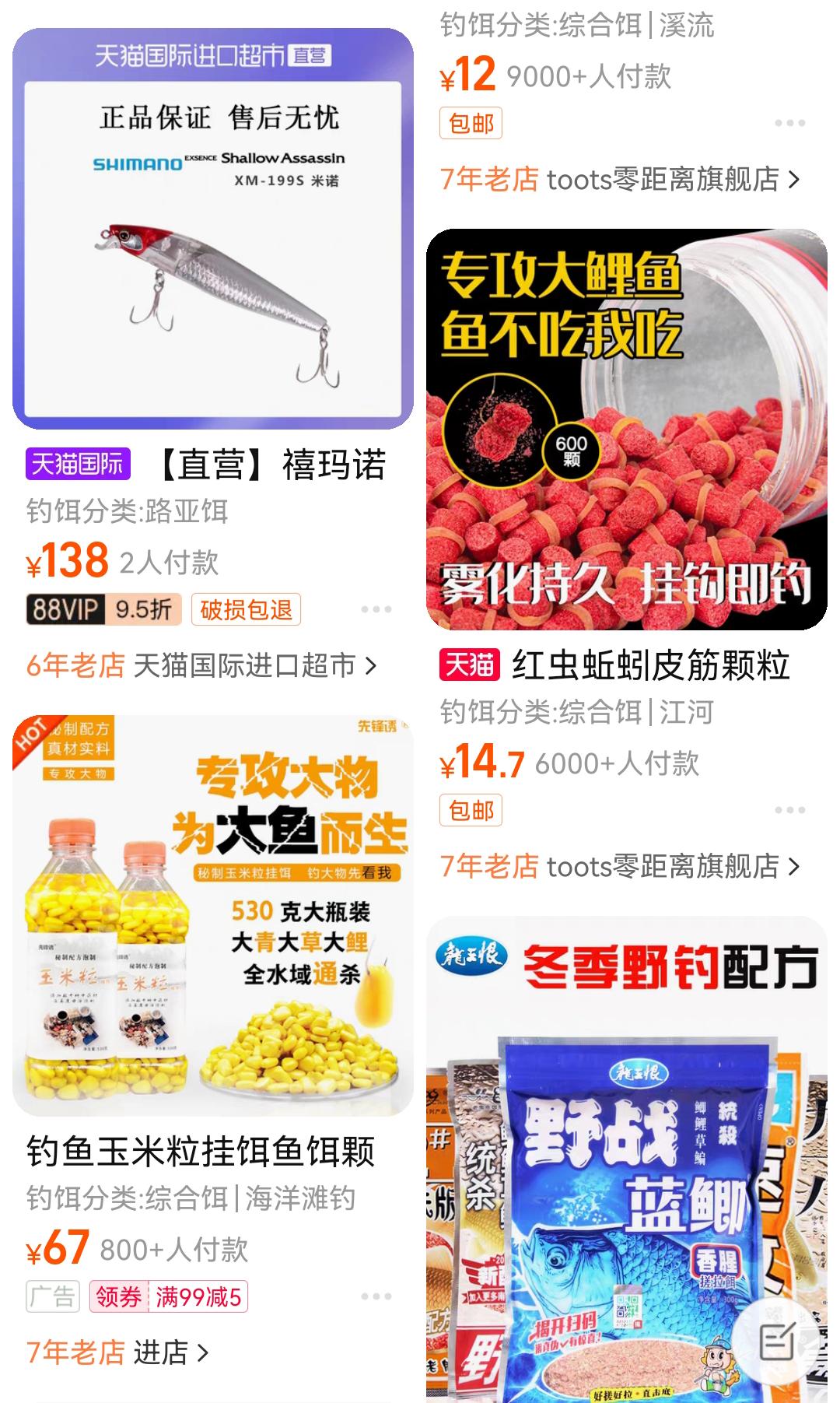 但由于钓鱼前需要把饵料大量抛撒,即使是使用渔具店中常见的活饵,钓一次鱼的成本也要几十到上百元。