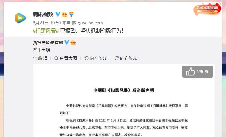 那么,腾讯此次为《扫黑风暴》发布的抵制盗版的声明有多大用处?腾讯视频作为《扫黑风暴》的播出平台,除了积极配合监管部门打击盗版资源外,自己还有哪些方法可以应对?