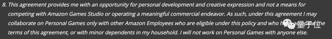 最后一条甚至有点搞笑了,说的是如果和别人合作开发游戏,那这个“别人”必须也是签过这份合同的亚马逊员工,或者是未成年的家属也行。