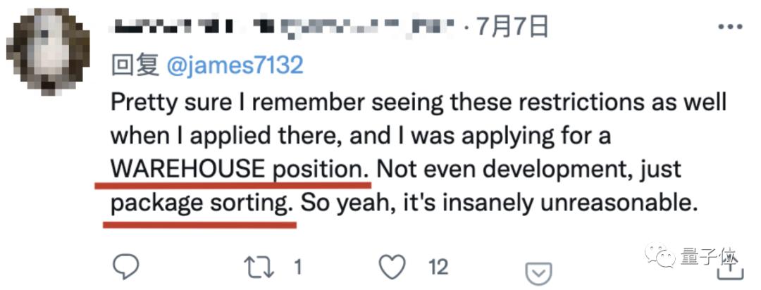 当事人James Liu申请的工作是在AWS云服务部门,而网友中甚至有在亚马逊仓库做包裹分拣的也签过这份协议。