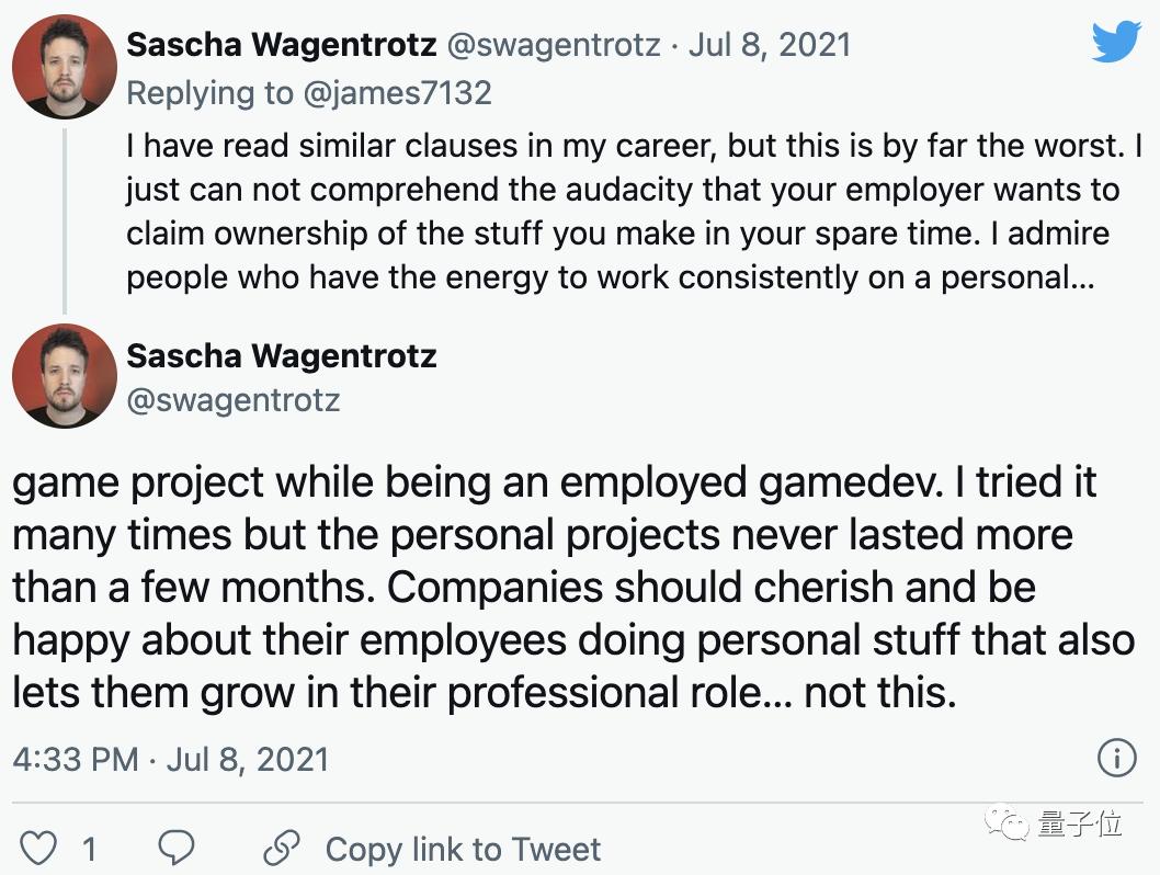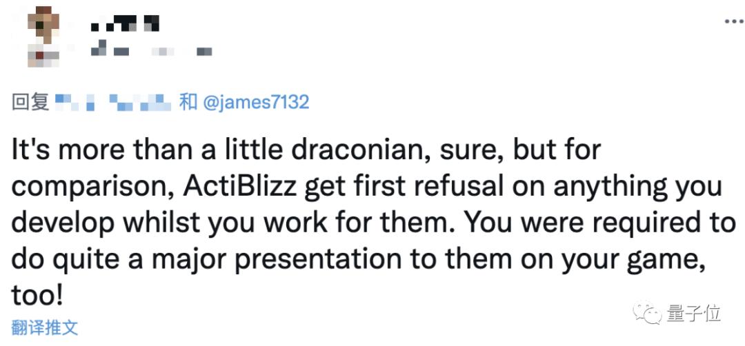 还有网友表示,游戏开发巨头动视暴雪对员工个人项目有优先购买权