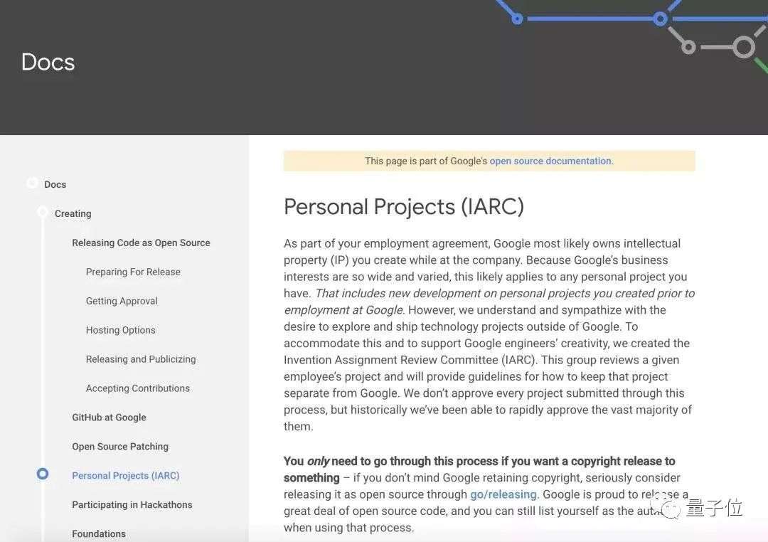 为了适应这种情况(个人项目版权问题)并支持谷歌工程师的创造力,我们成立了 Invention Assignment Review Committee(IARC),该小组将审查给定员工的项目,并将提供有关如何将该项目与谷歌分开的指南。
