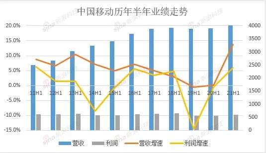 近日,中国移动公布了2021年上半年财报,运营收入为4436亿元,同比增长13.8%;净利润为591亿元,同比增长6.0%。对比历年半年报数据,可谓是又交出了史上业绩最佳的半年报。