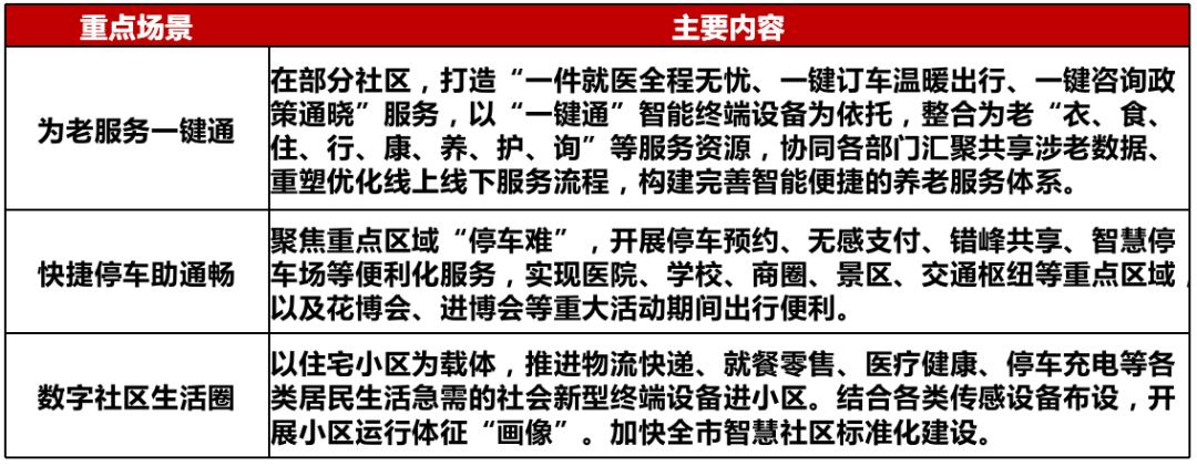 今年1月,上海公布了《关于全面推进上海城市数字化转型的意见》,在全国率先打响城市数字化转型“发令枪”。经过半年时间,上海出台了数字生活的建设导引,共十二大类场景、二十个示范标杆。其中和“数字家园”直接相关的包括:为老服务一键通,快捷停车助通畅,数字社区生活圈。我们认为,对参与智慧社区建设的地产企业来说,从现在开始就需要思考如何打造社区服务集成平台,更好连接融合外部各类服务供应商,以实现“智慧社区”向“数字家园”的新形态转型。