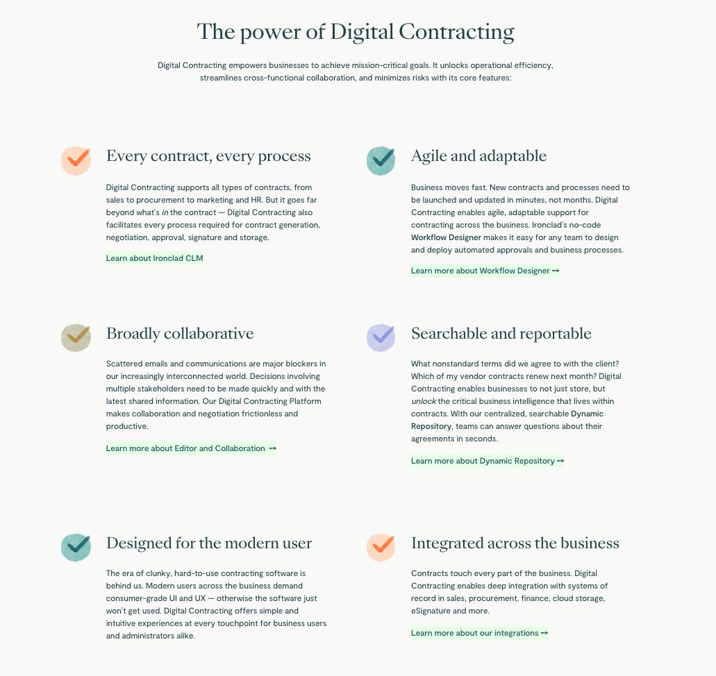 它的明星产品Workflow Designer让法律团队可以根据自己的业务流程自定义工作流, 随时调整合同和合同政策,同时还提供数据支持和解决方案,目前包括Dropbox和Mastercard等公司都是它的客户。