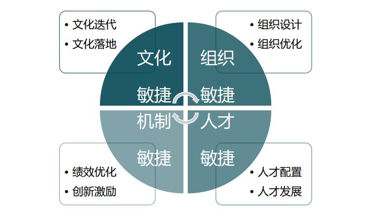人的主观能动性被充分激发后能极大的降低管理和用人成本,由此可见文化的重要性,不同与传统的讲道理及形式主义,文化敏捷指的是企业依据业务转型和发展中需要统一的思想,提炼核心观点形成企业的主旋律,采用即轻且快的方式传递给员工,让大家迅速理解且乐于接受,更为高效的激发员工使命感。