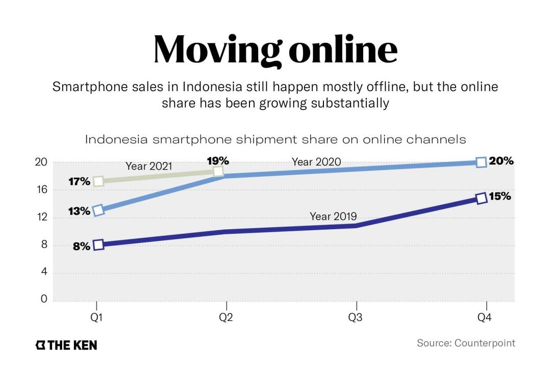 印尼智能手机销售份额向线上转移 / Counterpoint