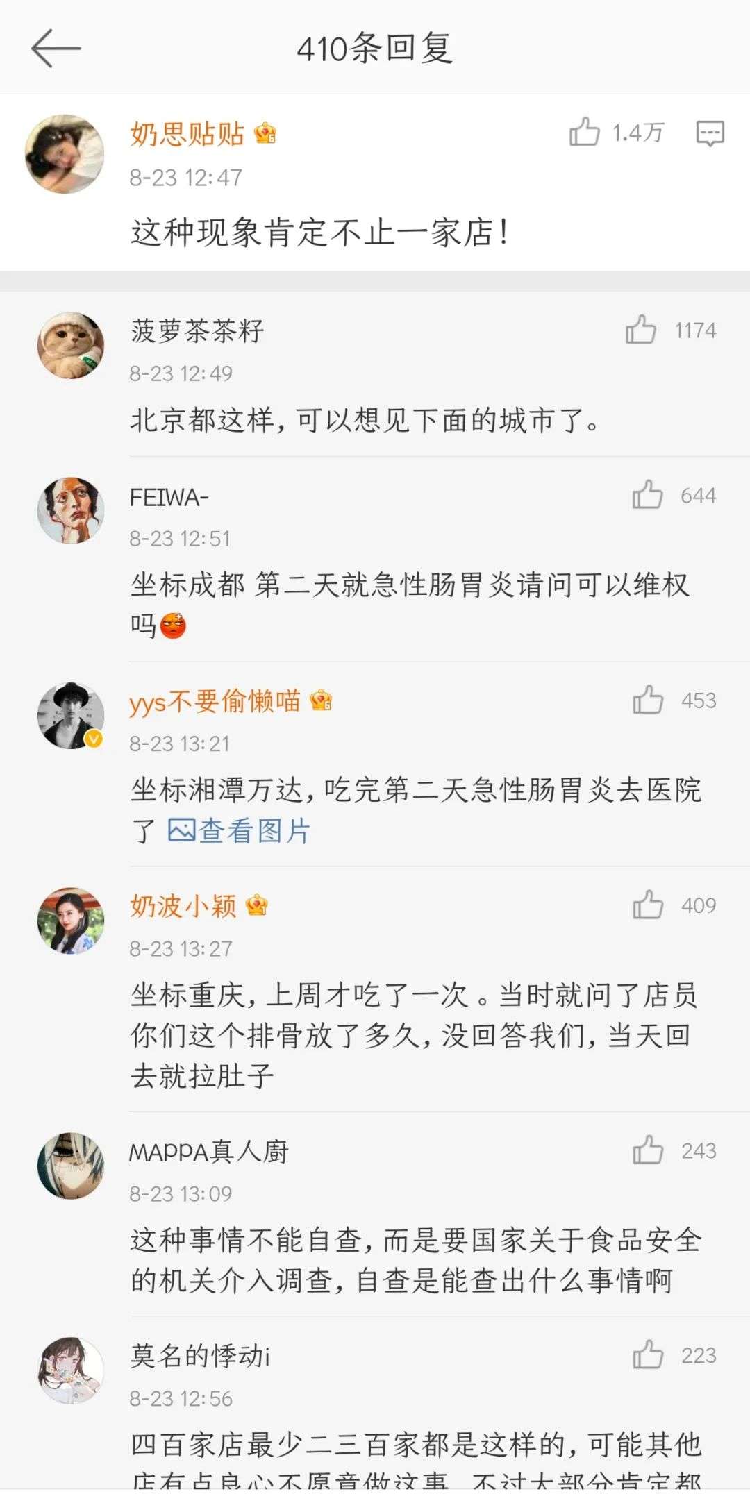 还有很多网友表达了,连北京由胖哥俩总部直接参与管理的合营招牌店面都出现了如此严重的食品安全事件,还有“很多城市加盟店的食品安全是否更得不到保障”的担忧。