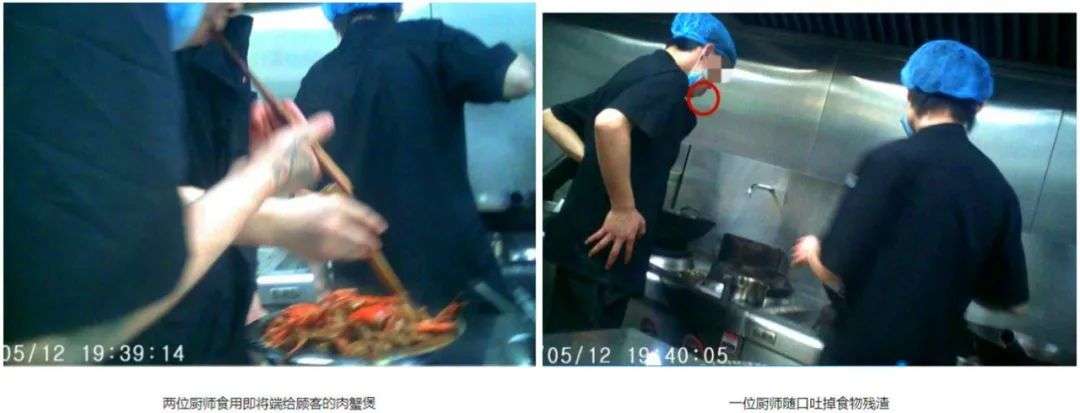 “涉事门店后厨员工偷吃客人的菜,然后拿沾着厨师口水的筷子扒拉扒拉再端上去给顾客享用”,有卧底调查记者实拍视频截图为证: