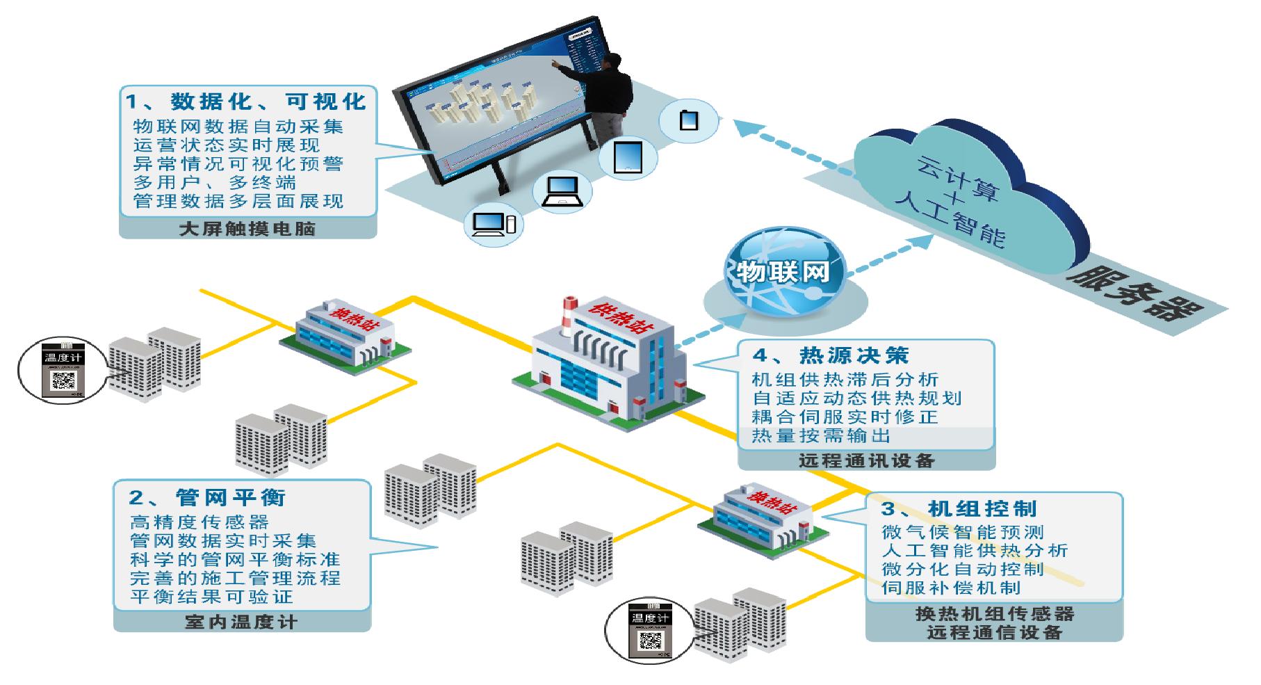 集中供热行业在高速发展中面临着用热需求、室温需求、个性化供暖需求得不到满足的困难,以及高耗能、低效率、高污染等问题。在此背景下,智慧供热不仅是供热行业技术、管理升级及有效实施供热节能的重要选择,也是实现“2030年碳排放达峰、2060 年碳中和”目标的关键一环。