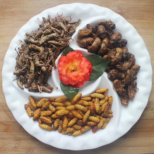 只有这些低脂肪、高蛋白、纯天然,还养生的昆虫们,才配得上尊贵的客人,不管下不下得去嘴,来都来了,总要吃点。