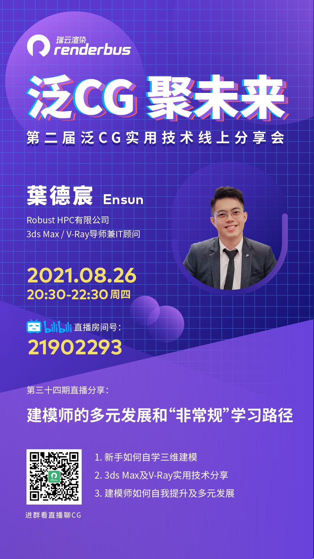 所以在本次直播中,Ensun也将和大家分享建模师的多元发展和“非常规”学习路径,教你新手如何自学三维建模、建模师如何自我提升及多元发展、以及3ds Max及V-Ray的实用技术知识。