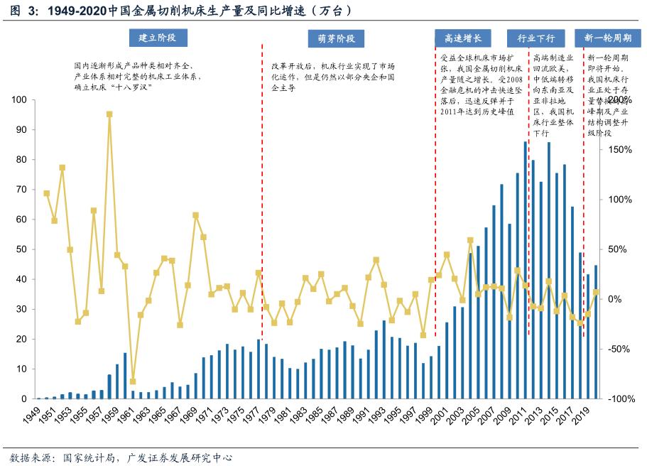 广发证券分析师将国内的机床行业历史分为五个阶段: